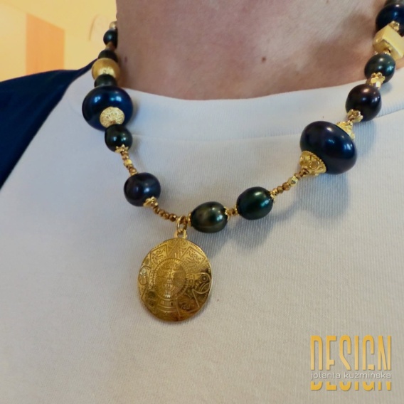 Naszyjnik z czarnych pereł z zawieszką Majów/Inków – 44 cm