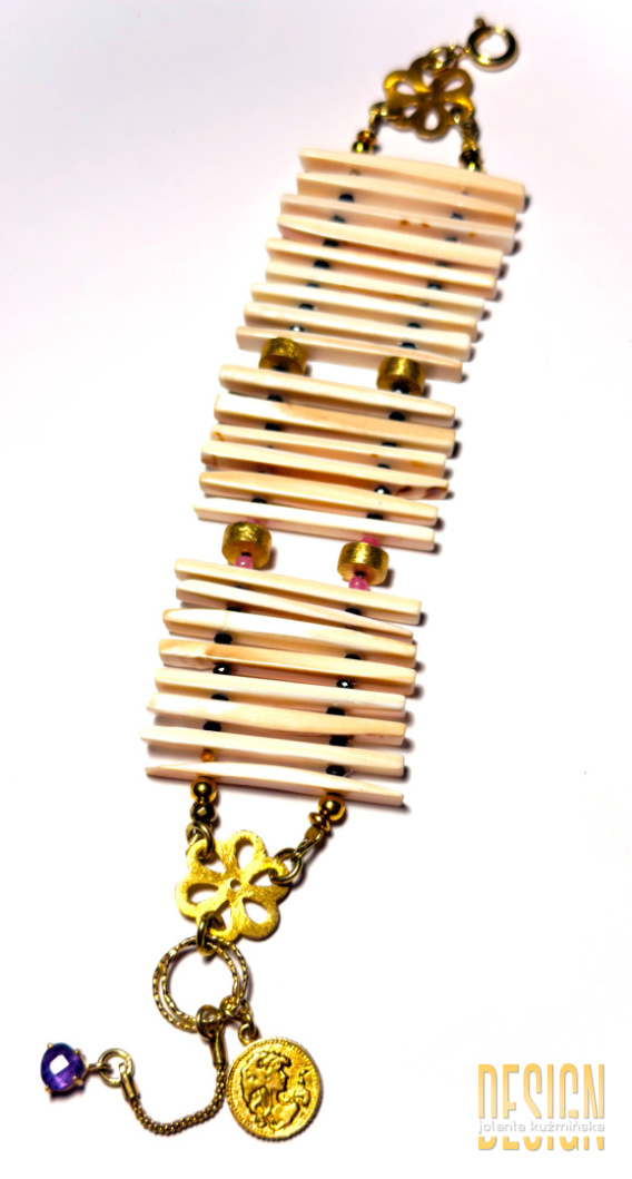 Bransoletka z Masy Perłowej Bogato Zdobiona Złotym Srebrem