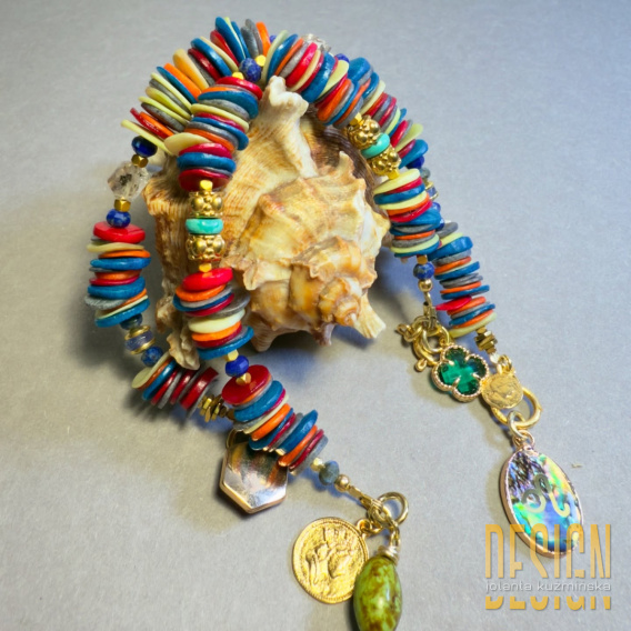 Ta kolorowa bransoletka z naturalnych kamieni i muszli to nie tylko biżuteria – to małe dzieło sztuki dla kobiet ceniących indywidualność, barwę i magię natury.