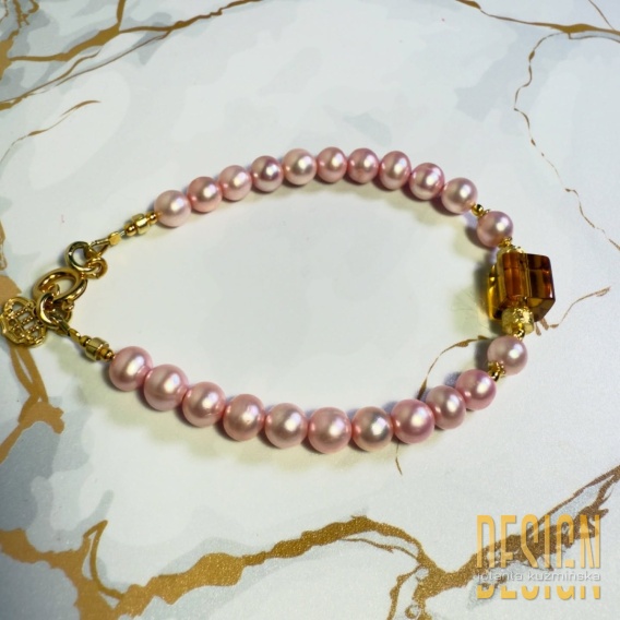 Bransoletka z różowych pereł i kwarcu dymnego to połączenie delikatności i klasy z nutą ciepłego, szlachetnego blasku. Każdy element został wykonany ręcznie z najwyższej jakości materiałów w pracowni Kuźmińska Design.