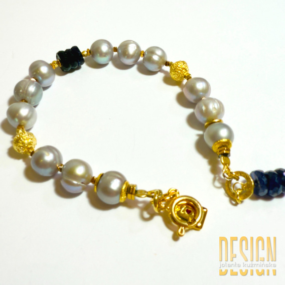 Bransoletka z szarych pereł i szafirów w srebrze pozłacanym 24 K | Kuźmińska Design