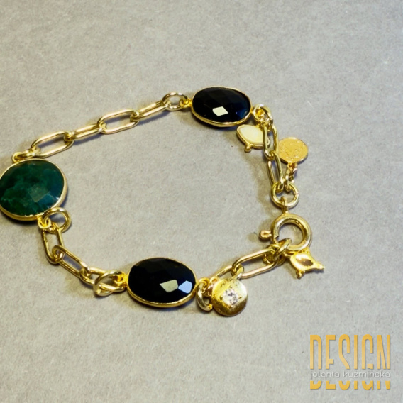 • Bransoletka ze szmaragdem i onyksami na złoconym srebrze