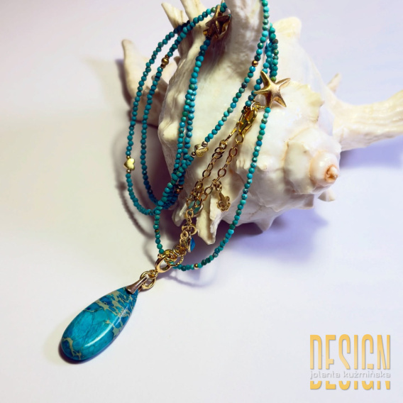 Długi naszyjnik z naturalnych turkusów – kolekcja Magic Drops | Kuźmińska Design