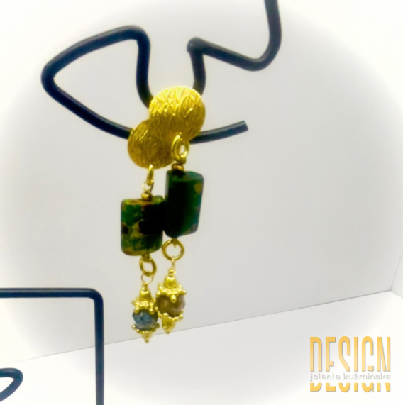 Odkryj wyjątkowe kolczyki designerskie z jaspisów, które łączą w sobie naturalne piękno i niepowtarzalny styl. Każda para została wykonana z najwyższą starannością, wykorzystując naturalne jaspisy o unikalnym wybarwieniu, zestawione z elementami srebra złoconego 24-karatowym złotem. Te subtelne, a zarazem wyraziste kolczyki mają długość 5,5 cm, dzięki czemu idealnie dopełnią każdą stylizację - zarówno codzienną, jak i wieczorową.