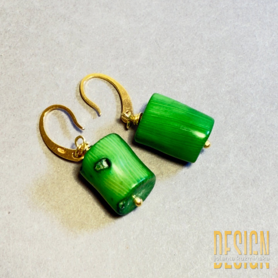 • Kolczyki z naturalnego zielonego korala | Srebro złocone 24k – Kuźmińska Design