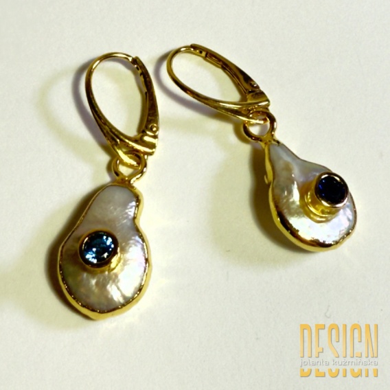 • Kolczyki z perłami, topazem i szafirem w srebrze złoconym 24K | Kuźmińska Design