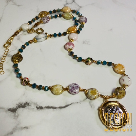Naszyjnik Antiqua z jaspisów i apatytu z antyczną zawieszką – 42 cm