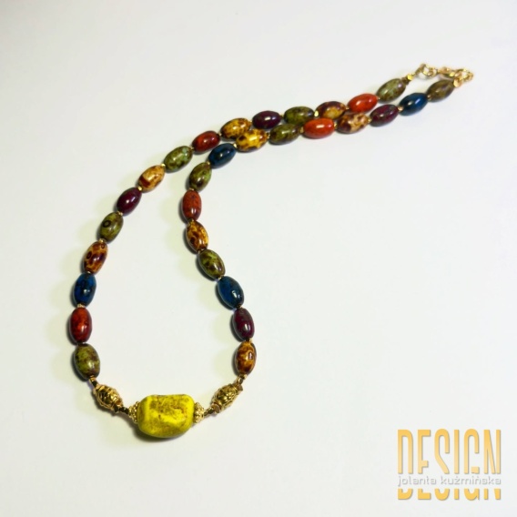 Naszyjnik z kolorowego jaspisu i żółtym howlitem – biżuteria handmade | Kuźmińska Design